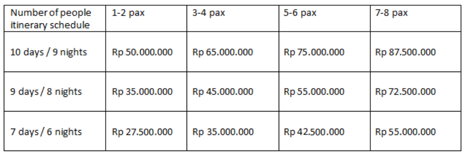 Tour Prices: Tour Prices in Indonesian Rupiah
